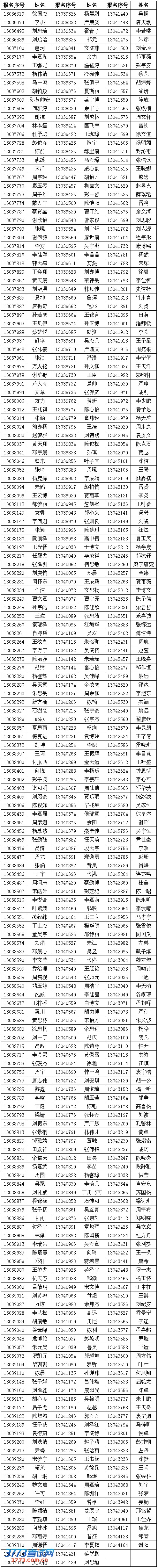 [图文]2013华中科技大学自主招生A类计划校考四省入围考生名单
