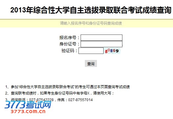 2013年综合性大学自主选拔录取联合考试成绩查询