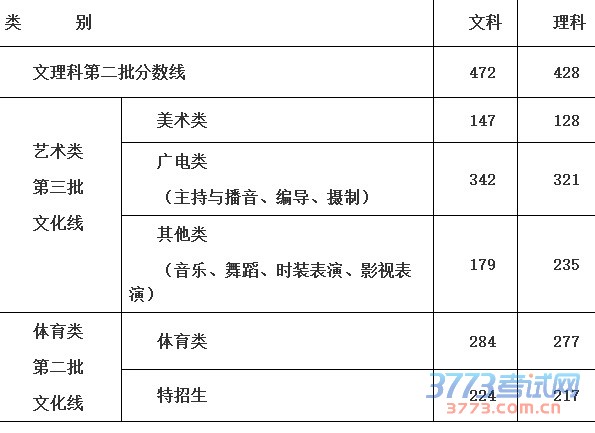 体育类文科284分理科277分,特招生文科224分理科217分