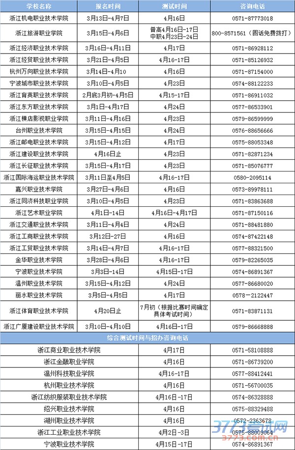 3773考试网浙江站讯 (记者 陈显婷)高职提前招生与“三位一体”招生,同为浙江新高考招生改革方案中的重要组成部分,2016年浙江高职提前招生范围扩大,共有35所高校参与,计划招收普高生和中职生共14241人。截止目前已有近10所院校的报名时间截止,各校综合测试多集中在4月中下旬。
