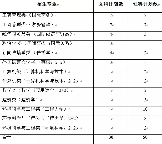 2016年招生计划为80名,其中文科30名,理科50名。具体招生大类和专业分配如下: