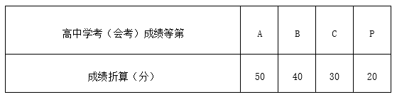 综合成绩总分500分=高中学考(会考)成绩(折合成满分50分,占总分的10%)+综合素质测试成绩(满分200分,占总分的40%)+高考考试成绩 (折合成满分250分,占总分的50%)。