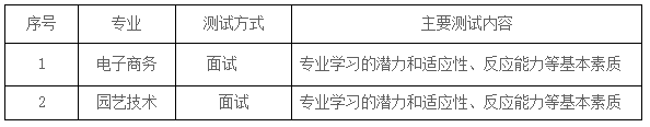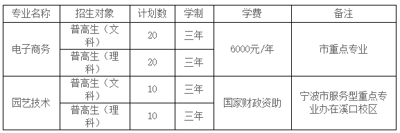 第六条 招生专业为电子商务、园艺技术,面向普高毕业生招生。其中,电子商务文理科各招20名,园艺技术文理科各招10名,总计划为60名。