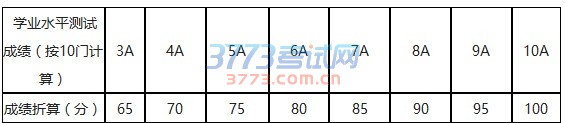 学业水平测试成绩换算如下表:
