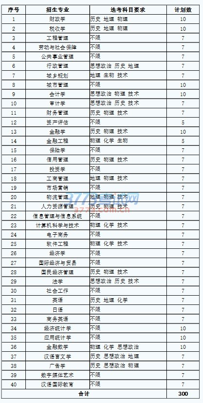 普通类总计划数为300名。具体招生专业、计划如下表: