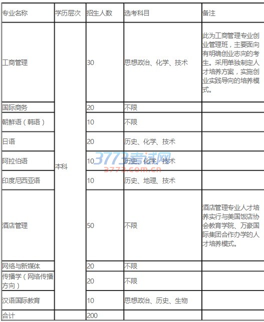 专业名称 学历层次 招生人数 选考科目 备注
