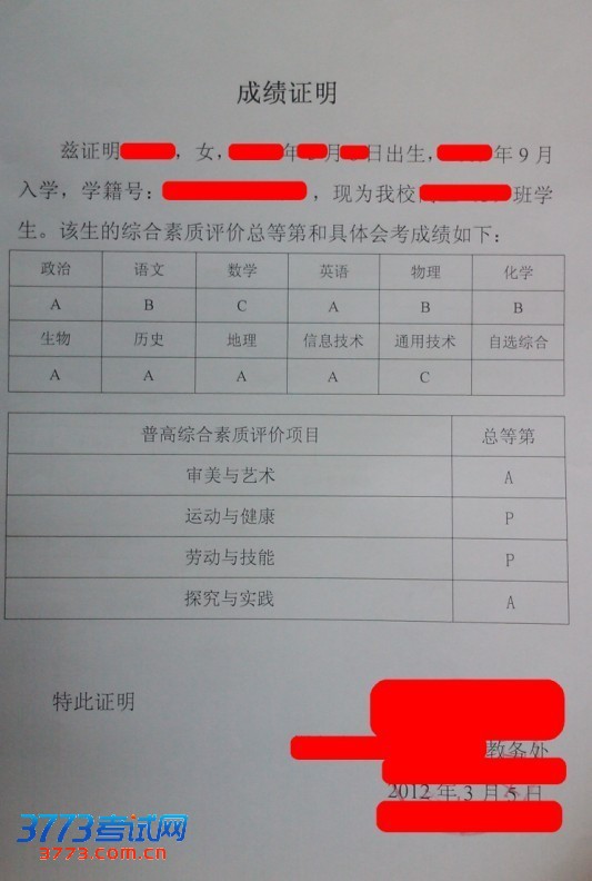 问题8:关于问题2中贵校要求的材料5,教务处公章的学业水平测试(高中会考)成绩、综合素质评价等第证明,能否有一个明确的模板样式?