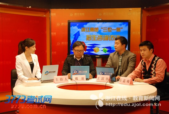 【主持人】最近,一本叫做《浙江高校“三位一体”招生应对技巧》的参考书已经正式出版了,这本书是目前唯一一本全面介绍浙江高校“三位一体”招生情况,并针对高校“三位一体”招生提出相应应对技巧的参考书籍。眼下正是高校“三位一体”招生的报名季,这本书也受到了考生的热捧。今天我们很高兴邀请到这本书的主编王国华老师、戴迪老师、石磊峰老师,与我们一起聊聊“三位一体”招生的话题。
