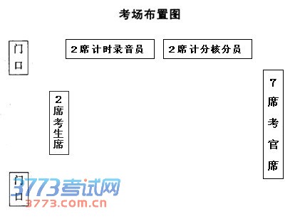 ①面试考试设立考生候考室、准备室、考试室、休息室,并有专人负责管理。各室之间不能相互影响,有一定的空间距离。