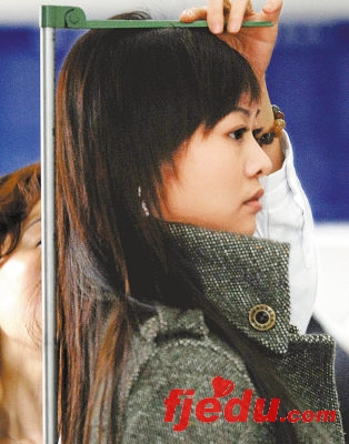 3月24日,一位应聘者正在测量身高。当日,长沙市职业介绍服务中心举行“准国际空姐”招聘会,尽管招聘条件苛刻,入选后还须交纳培训费并参加十多个专业科目的培训,仍有近800位女士在招聘第一天报名面试。新华社记者李尕摄