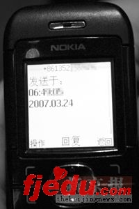 李丽(化名)向记者展示她在早上6时许收到的手机短信