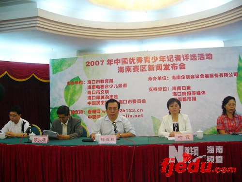新华网海南频道3月25日电(赵叶苹谭惠丹)记者从海口市教育局25日召开的新闻发布会上获悉,2007中国优秀青少年记者评选活动海南赛区正式启动。