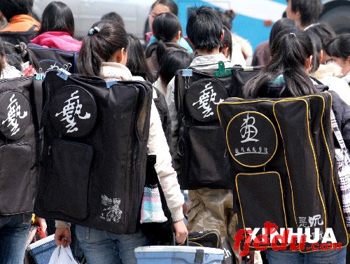 3月25日,考生带着画具进入南京艺术学院考场参加美术专业统考。