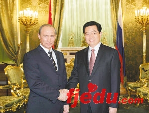 胡锦涛强调,中俄互办“国家年”,是两国关系史上的创举,是落实《中俄睦邻友好合作条约》的重大举措。去年,“俄罗斯年”获得巨大成功。在俄方大力支持下,“中国年”一定会像“俄罗斯年”一样取得成功。