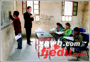 昨日(27日)上午,两个多小时的艰难跋涉,志愿者们终于来到大寒峪小学,老师程全民正在为在校的4名(其中三年级3名、四年级1名)学生上课。