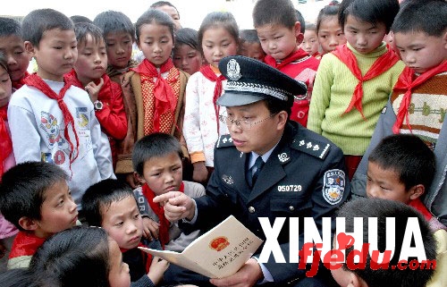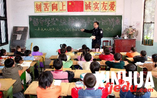 3月29日,四川省华蓥市永兴派出所的民警在为永兴小学的“留守儿童”讲解法律与安全知识。