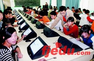 昨(30)日,在石狮六中的电脑室内,学生们在老师的指导下,学习信息技术基础知识。据悉,这两年石狮市加大对农村教育的投入,农村办学条件得到了明显改善。如今,农村学校电脑室、语音室、多媒体室、网络教室等信息化设备逐步完善,给广大师生了解更多的信息提供了方便。(吴金森王柏峰摄)
