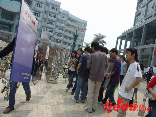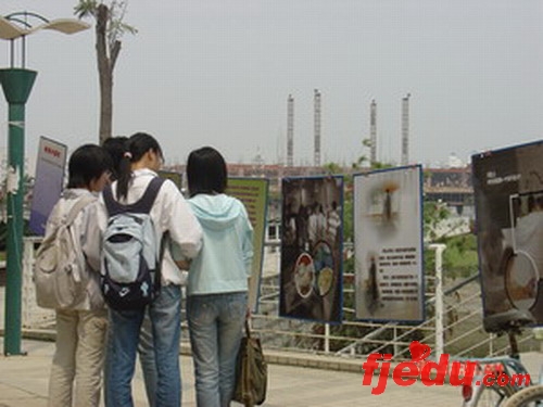 为丰富学生校园文明行为养成教育活动,从3月26日开始,漳州师院学生处举办了题为“眼睛的尴尬”不文明图片展,向广大的同学发出了“做文明学生,建和谐校园”的倡议。展示的18幅图片是关于校园中较为普遍存在的不文明现象,采用实照(全都是取自校园各个角落的真实镜头)和漫画结合的形式,配以风趣的解说,给人很强的视觉冲击力。图片展示板先后在各个校道上展出,让更多的同学认识到校园中存在的不文明现象。绘制精美的展示板吸引了大批同学的驻足观看,他们不时地评论,被身边的不文明行为所触动,起到了很大的教育和警示作用。