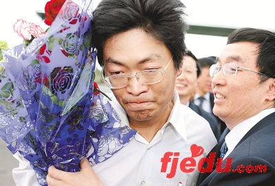 照片:4月30日,在埃塞俄比亚首都亚的斯亚贝巴,平安获释的中国工程师张晓宇(左)抵达机场后热泪盈眶。新华社记者王迎摄