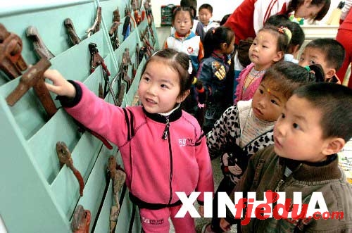 4月30日,幼儿园的孩子们辨识劳动工具。“五一”前夕,江苏淮安市一家幼儿园开设“劳动最光荣”主题课,通过辨识劳动工具、实物操作等系列活动,增强孩子们从小热爱劳动、珍惜劳动成果的意识。新华社发(叶首卫摄)