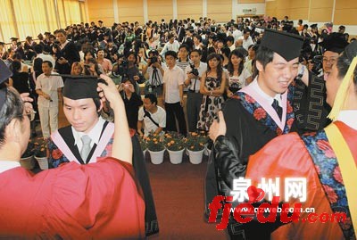 据悉,今年华侨大学共授予博士、硕士学位213人,学士学位3293人,有218人被授予“优秀毕业生”称号。华侨大学首届印尼泗水班20名学生全部毕业。为协助印尼缓解华文师资缺乏现状,国务院侨办、华侨大学、福建省侨办与印尼东爪哇华文教育统筹机构合作,从2003年起由印尼东爪哇华文教育统筹机构每年选派20名华裔青年到华侨大学学习汉语,在校学习四年全免学费,福建省侨办资助学生住宿费。