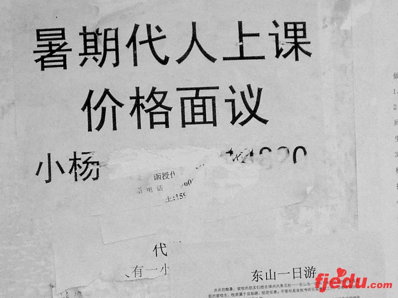 记者近日在漳州师院采访时,发现在食堂、公寓、校道边的树上,甚至厕所的墙上,到处都有“暑期代人上课,价格面议”、“函授论文写作代理服务”等广告,服务者的联系方式写得清清楚楚,有的还会吹嘘:“我们的期待,您的满意”。