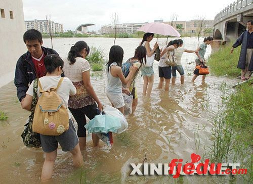 新华网8月19日报道 当日,受今年第9号强台风“圣帕”影响,暴雨袭击了福州大学城,导致上千名暑假留校和提前返校的大学生被洪水围困。目前,福州市主要领导前往大学城指挥学生转移,争取在当日入夜前将所有受困师生全部转移到安全地带。