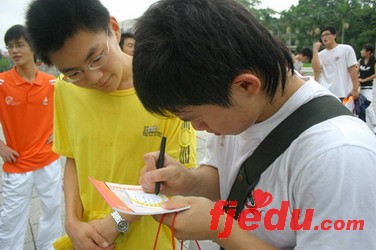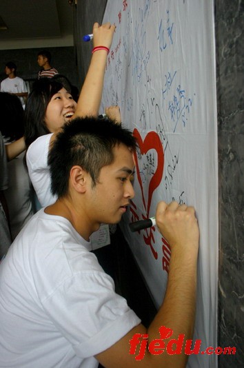 活动中,两岸学子都找到了自己的“对子”,成为好朋友,相互留下了联系方式,并在“同根同源,多元交融”签名旗上签名留念。台湾同学还热情邀请大陆同学到台湾去玩,表示一定要带他们去品尝精美的台湾小吃。