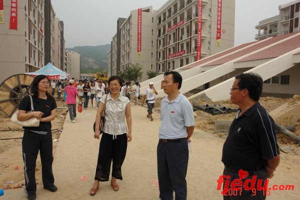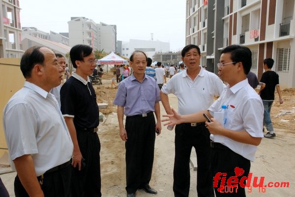 学生新公寓刚落成,一些配套设施正在完善,院领导兵分数路下到一线实地协调解决问题。图为院党委书记刘金桂、副院长林茂溪和厦门市重点建设工程办公室主任董学智(左一)在学生新公寓听取汇报解决难题