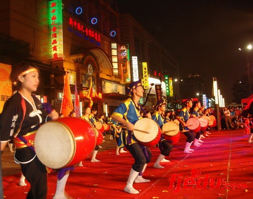 以“心的期待,新的未来”为主题的“北京中日民间文化节”13-18日在王府井商业步行街举行,外国语学院太鼓队应邀参加表演活动,参加活动的28名同学与日本大学生一同表演“冲绳太鼓”,充满喜庆和欢快的鼓乐引起现场观众好评。