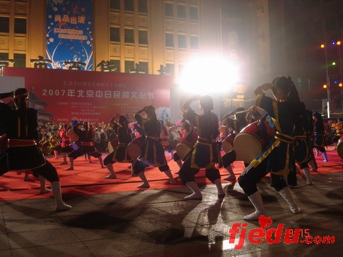 在“北京中日民间文化节”上,来自两国各地的近800名演员参与演出,为现场观众献上中国传统的舞龙、舞狮、腰鼓,以及具有浓郁日本民族风情的阿波舞、长崎重阳节舞、冲绳太鼓等节目。