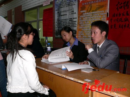 由泉州理工学院就业指导中心主办,好工作人才网、校创业协会协办的泉州理工学院2008届毕业生供需见面会11月13日上午在泉州理工学院举行。近120家用人单位前来招贤纳士,其中不乏沃尔玛、麦德龙、中国联通、泉州酒店、中国人寿、中企动力、德尔惠等知名企业,本次招聘会共提供1320个工作岗位,吸引了校内外毕业生数千名前来求职。泉州理工学院就业指导中心及各系负责就业、实