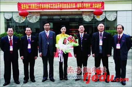 对于此事,专家组副组长、华南师大党委书记杨文轩教授昨天晚上在接受本报记者采访时表示,网友应该看淡广西师大校领导与袁俏合影的事情,“很正常,不是什么了不起的大事嘛”。他表示,这是不同学校接待方式的差别,有的学校就只是派教务处长出去迎接下,有的学校是校长出来,“不是什么严重的问题,这也是广西师大重视迎评工作的一个表现”。