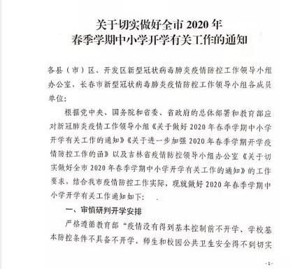 关于长春市春季中小学开学通知的消息又有新进展了!今天(3月26日)长春市发布文件“做好2020年中小学开学有关工作的通知”。