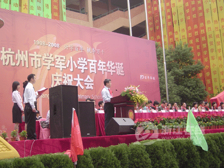 学校简介:杭州市学军小学(杭州师范大学第二附属小学)是有百年历史又具现代气息的浙江省示范性实验小学,建校于1908年,始名杭州府官立初等小学堂。从1992年开始一直被评为浙江省文明单位、浙江省先进学校,1991年被杭州市人民政府外事办公室确定为重点涉外参观单位,1998年被命名为教育部现代教育技术实验学校,2002年被评为全国首届中国少年弘扬白求恩雷锋精神十佳先进集体、浙江省首批绿色学校、浙江省教育科研200强学校,2003年被评为杭州市首批文明学校,2005年被评为浙江省校本教研示范学校、杭州市示范文明单位,2007年被评为浙江省爱国卫生先进单位、浙江省语言文字规范化示范学校,2008年被评为浙江省健康促进学校金奖、杭州市最清洁单位。学校连续多年被评为杭州市人民满意学校,是杭州市国际交流的窗口。