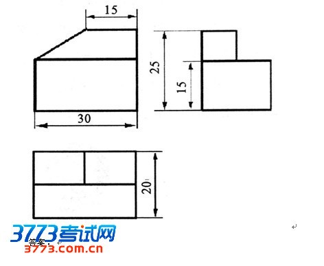 例2:根据三视图标注的尺寸,画出该部件的正等轴侧图(单位:mm)。(请保留作图痕迹)。