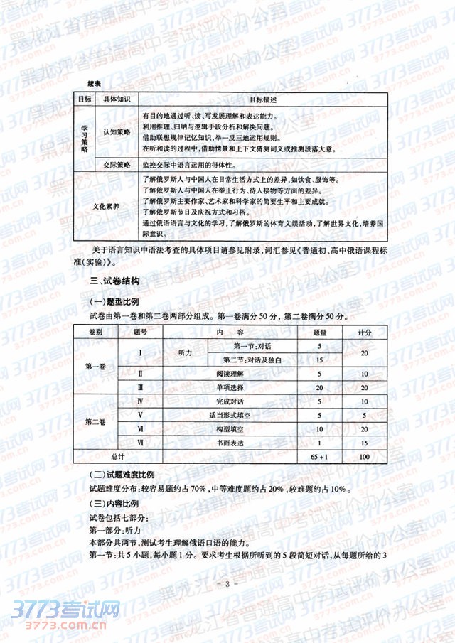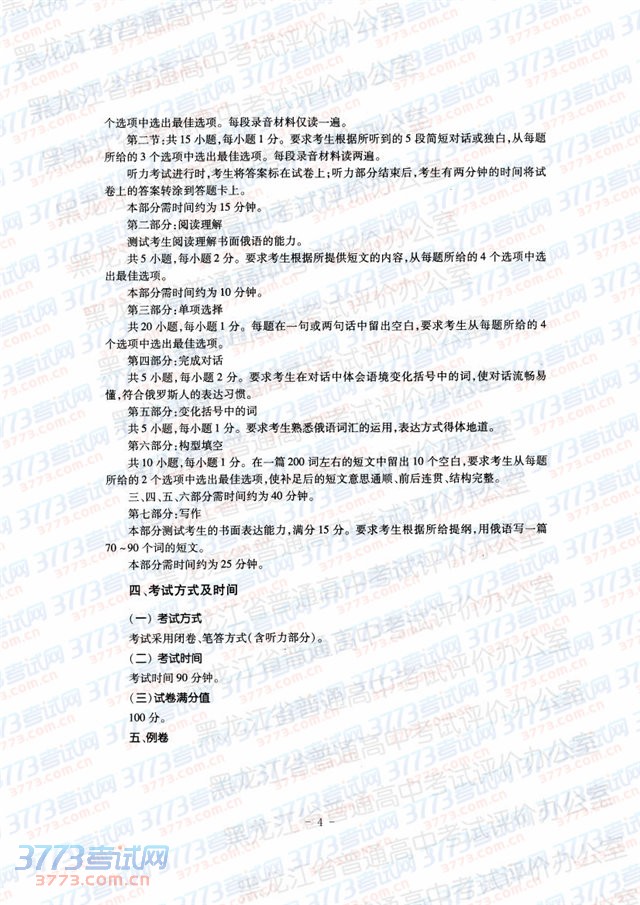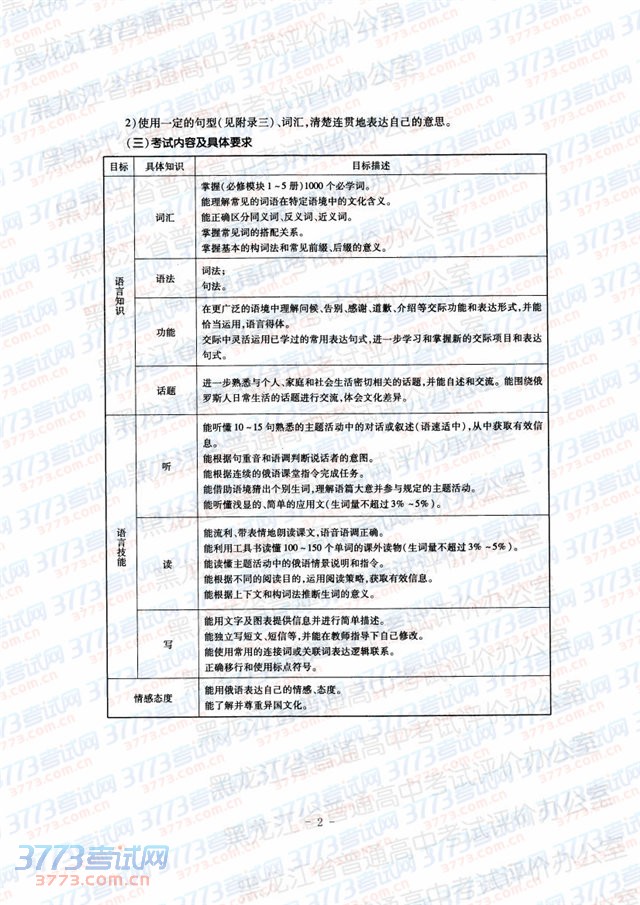 [组图]2014黑龙江学业水平考试俄语考试大纲说明