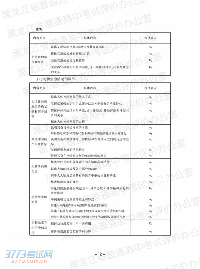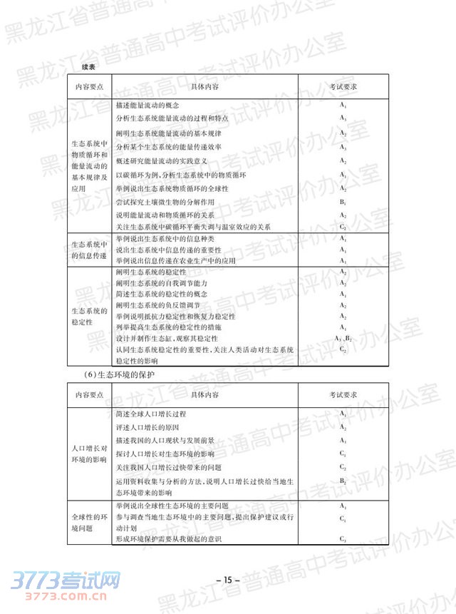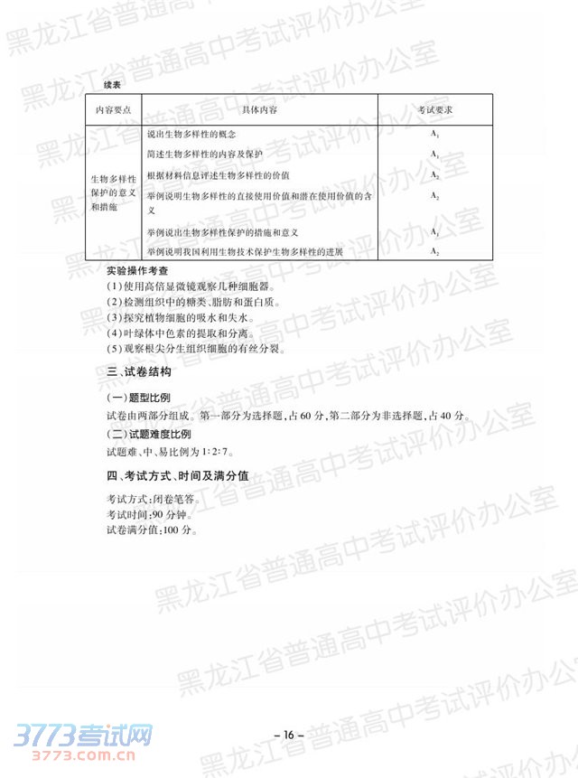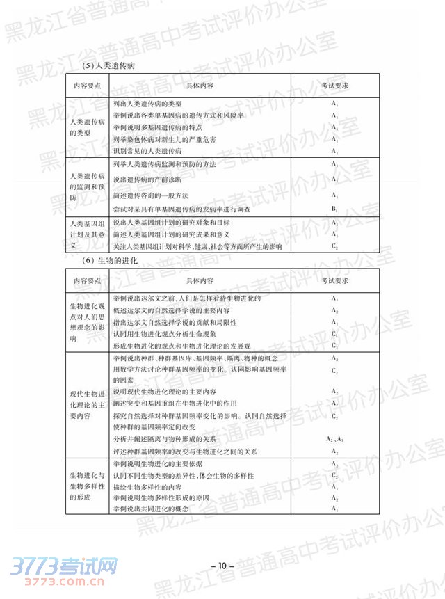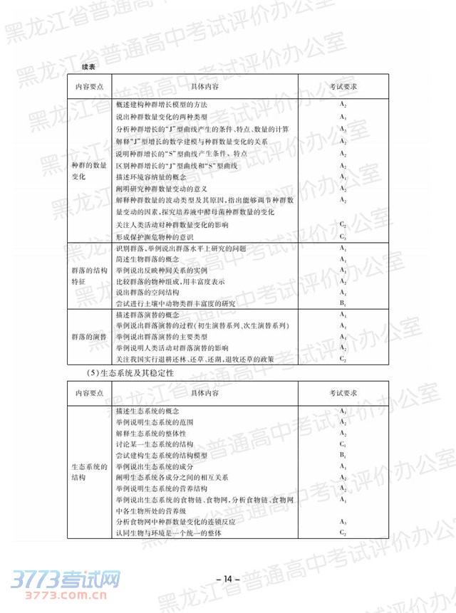 [组图]2014黑龙江高中学业水平考试说明大纲(生物)