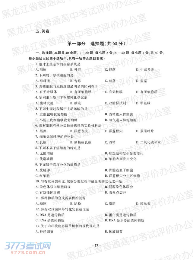 3773考试网高中学考会考黑龙江高中学业水平正文