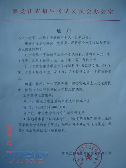 [图文]关于调整黑龙江学业水平考试经费分成比例的通知
