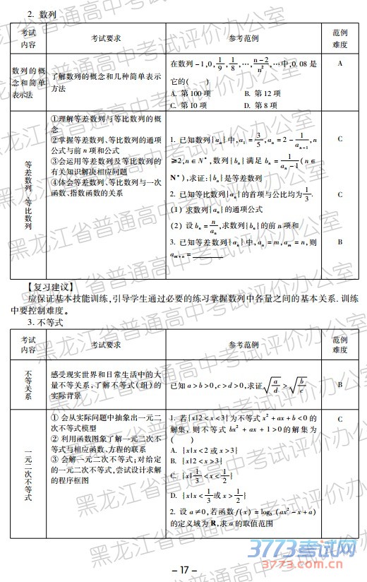 [组图]2015黑龙江会考学业水平考试说明(数学)