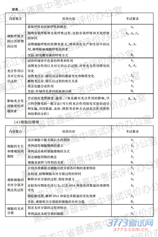 [组图]2015黑龙江学业水平考试大纲说明(生物)