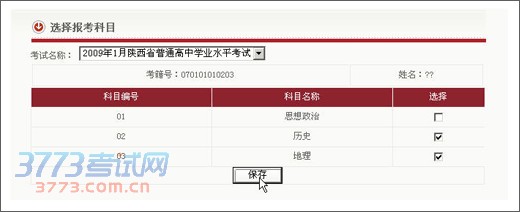 4.点击“考试科目选择”,在学校设置可供选择的科目中选择本次考试要参加的科目并确认,在确认之前可以对选择的科目进行修改,确认之后不能修改,如果有错误可向学校申请。