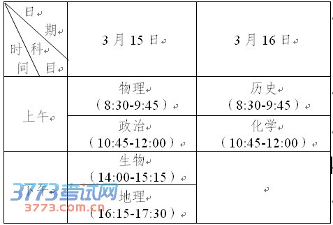 我省2014年普通高中学业水平测试必修科目考试时间安排如下: