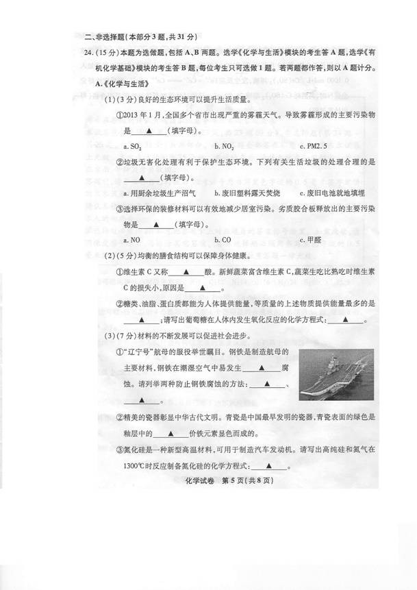 2013年江苏省普通高中学业水平测试(必修科目)试卷化学(含答案