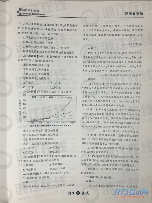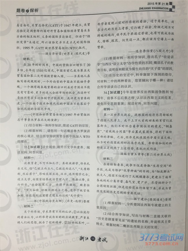 [组图]2015年10月浙江高中学考选考历史试题及答案