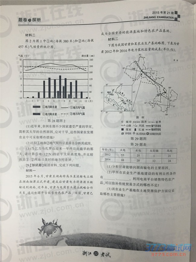 [组图]2015年10月浙江新高考学考选考地理试题及答案