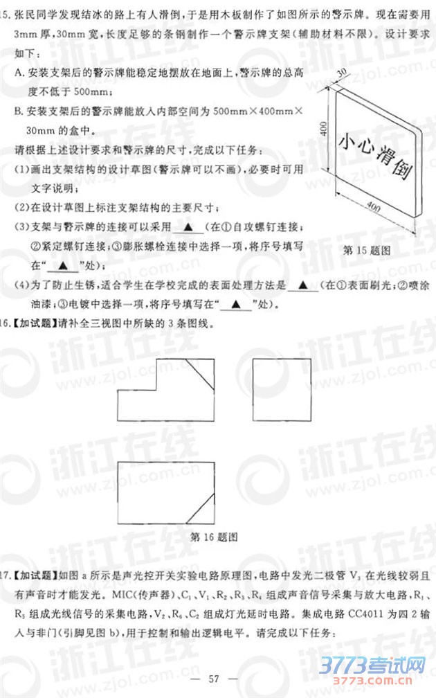 [组图]2015年10月浙江新高考学考选考技术试题及答案
