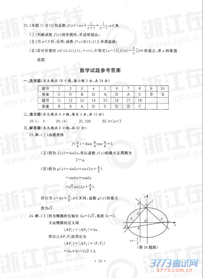 [组图]2015年10月浙江新高考学考选考数学试题及答案
