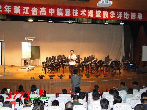 2012年10月17—19日,为期三天的浙江省高中信息技术优质课评比观摩活动在温州中学举行。本次活动由浙江省教育厅教研室主办、温州市教育教学研究院、温州中学承办。浙江师范大学数理信息学院王基一教授、温州市教育教学研究院刘加西副书记及温州中学徐坚书记出席了开幕式,来自全省各地的高中信息技术教研员与教师共计600余人参加了此次活动。